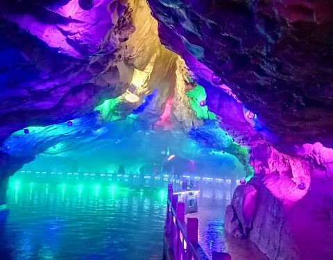 如果没去过其他溶洞,可以去感受一下。景区整体不大,娱乐设施略少。但是有山有水,环境优美,空气清新。服务人员热情周到,介绍讲解细致。溶洞里面,灯光绚丽多彩,还是挺美的。记得穿件厚一点的冲锋衣,里面有点冷,偶尔会有水滴。