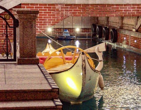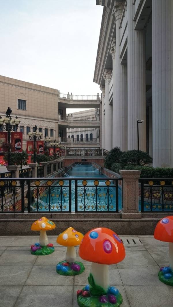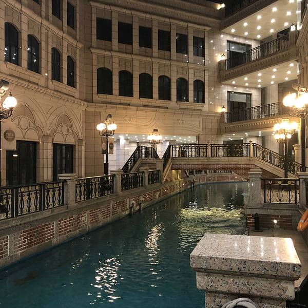 环境:仿制的是威尼斯小镇,然后这条河也是真的很短了,可以坐贡多拉船,一次100元,最多可以坐4位游客;基本上不会去尝试了吧,个人觉得距离有点短哦。这里的阿姨大叔很年轻,他们是专业过来凹造型的,都带了很多的衣服,相机镜头也是一个又一个的,很专业啊。