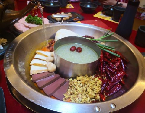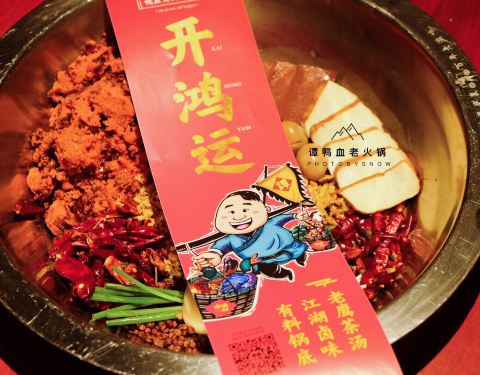 谭鸭血老火锅源自天府之国成都,本店是在上海的首家直营店。在这里不仅能品尝到地道川味火锅,还出吃出好运气,开动前撕掉锅沿的大红封条,就能鸿运当头。