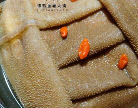 终于来打卡成都网红红红红火锅 听说在全国有100多家门店,排队排到天荒地老,四川市井火锅的风格,大红灯笼,红木漆桌椅,处处彰显着喜庆感 经典谭鸭血红锅:78米。 来这儿岂能不点红锅?锅底的开启很有仪式感,...终于来打卡成都网红红红红火锅 听说在全国有100多家门店,排队排到天荒地老,四川市井火锅的风格,大红灯笼,红木漆桌椅,处处彰显着喜庆感 经典谭鸭血红锅:78米。 来这儿岂能不点红锅?锅底的开启很有仪式感,会让顾客撕开锅底的启封纸,预示着红红火火开鸿运,取个好兆头 锅底满满的底料,连牛油都是爱心❤的形状,喷香的气味,充满诱惑,锅底涵盖了十多种料,鸭血,鹌鹑蛋,卤豆腐干等等……再倒入特制的老鹰茶,据说可以不上火 重庆鸭血 这儿的鸭血真是一绝,据说一个月可以卖2w多份,锅底里本身有一份,也可以+12块钱另加鸭血充斥着满腔的川渝风味,细腻丝滑,Q弹滑顺的味道在口腔中弥漫 谭公四宝 仙气满满的上桌,颜值高,一次尝试四种食材,毛肚,鸭肠,黄喉和千层肚,七上八下一顿操作,脆就一个字 厚切午餐肉 不爱吃午餐肉的我竟然被谭鸭血的午餐肉折服,超厚的切片 贡菜 平时一定不会点这类素菜,但小伙伴墙裂推荐,真心惊喜,咯嘣脆的口感,简直比毛肚还要脆口