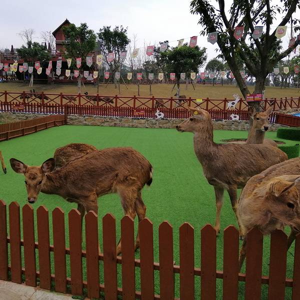 百花谷里面的萌宠乐园非常可爱。孩子们很开心据说是四川最大的火锅庄园