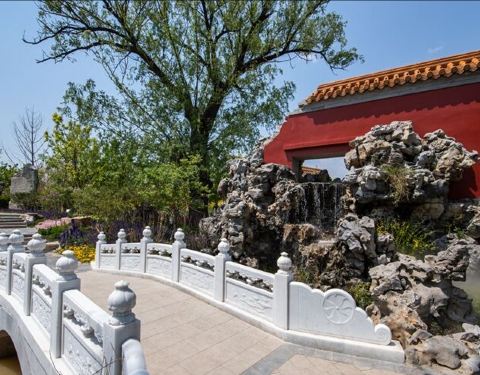 北京园是2019年中国北京世界园艺博览会上,少有的几个以城市名命名的园子,她突出了北京的城市特色。红墙黄瓦显示了曾有的皇权文化。
