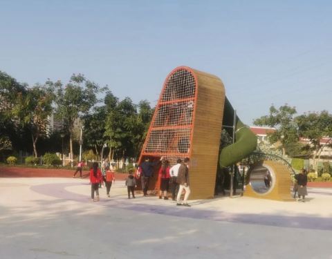 入口处左手边有个小音乐喷泉,夏天午后小朋友成群穿着小泳衣过来可以玩一下午湿身 正门右手边是多项目滑梯组合 中间有个益智攀岩设施 荡秋千,木马摇椅,模拟沙滩等一应俱全,很多设备不知道叫啥 要不是人多,我也得去玩一圈