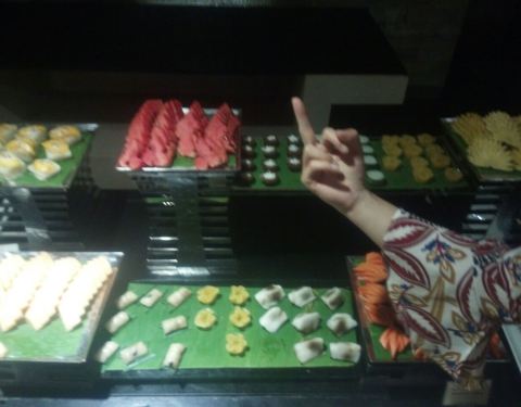 也不知道是不是改菜系了,这自助总共三种海鲜,大虾,鱿鱼圈,青口贝,仅此三种,而且味道非常不好吃,其他的吃的每一样都赶不上夜市的任何一种小吃,而且种类非常少,酒水单点,一瓶矿泉水12人民币,苹果汁30,水果种类非常少,但是菠萝很好吃,其他的每一样我都尝了全都吃不下去,但是,不得不说环境满分,服务满分,如果是奔着环境去的绝对不错,如果是去吃饭的,三思,而且我们去的价格是790泰铢一个人,一百六人民币