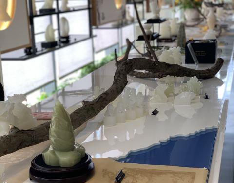 之前经过凌云玉石这栋楼,一直不敢进去,觉得这是一家公司,直到小伙伴告诉我,这儿是厦门唯一的一家玉石博物馆,我就惊呆了,怎么着都要来打卡体验一次。。 这儿交通还挺方便的,坐公交在禾山岭下站下车之后就看到凌云玉石这栋大楼,走个两百米左右就到了目的地。 进门之后,满眼都是玉石,连这棵许愿树也是玉石做成的,真的是豪气十足。当然了,除了可供观看的各种玉石原石或者工艺品之外,博物馆还设置了小朋友和家长一起互动的淘原石区域,还有自己动手在玉石刻章的区域等等,价格不贵,刻好的玉石还能带回家!我刻得很开心,虽然最后手酸了,但是满满的成就感,真的是太好玩了。