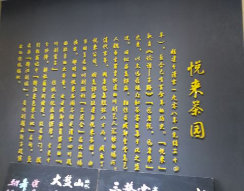 悦来茶园始建于光绪三十四年,至今已有百余年历史。“悦来”取自《论语—子路》“近者悦,远者来”之意,以志远近观众和茶客云集于此之盛况。悦来茶园这个“川戏窝子”的持久演出被众多新老戏迷视为心中的圣地,具有极大的、不可或缺的亲民性,已成为成都市一道亮丽的文化风景线。 悦来茶园位于成都总府路王府井商场背后,成都商贸商业繁华的核心区域。茶园各厅由有关专家制作楹联、匾对及川剧曲牌命名,保持着古朴、自然、人文的庭院式风格,建有仿古式万年舞台,成都市川剧研究院优秀的老、中、青演员以及梅花奖获得者每周定期在此演出丰富、灵动、多彩的川剧精品折子戏,吸引着慕名而来的海内外游客。
