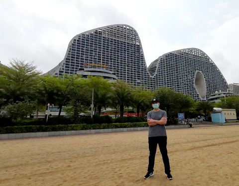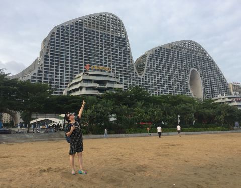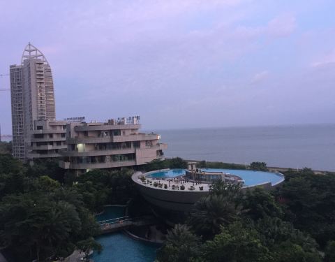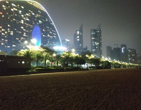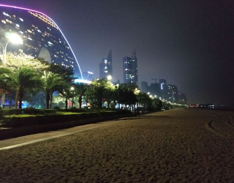 在北部湾一号附近,沙子颗粒比较大,这边海岸的雾气很大,如果想看海景的话,还是银滩那边比较好,这边主要是北部湾一号这栋建筑物比较有特点。