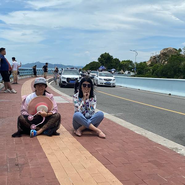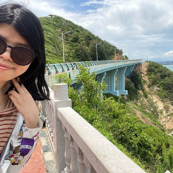 我们在桥上看风景苏峰山环岛路被誉为福建最美公路一边是翠绿山岗,一边是蔚蓝大海我和蓝色大桥自拍臭美一下这么美的风景不得不停留拍照留念姐妹俩傻傻的 展开