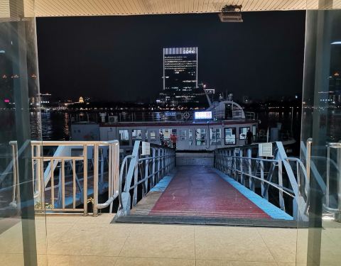 旧的黄沙码头紧挨海鲜市场,很简陋,只停靠普通轮渡。后来在其东侧修建起永久码头,两层高的站房大气明亮,不过距离商业区有些远,沿路没有树荫,烈日底下前来并不舒适,而且虽然沙面岛一墙之隔但却要绕一大圈过来很不方便。码头现已办理珠江游业务,不过最划算还是在日间乘坐水上巴士,有时还拿珠江夜游的船只来运营,两块钱就可以坐很远了。