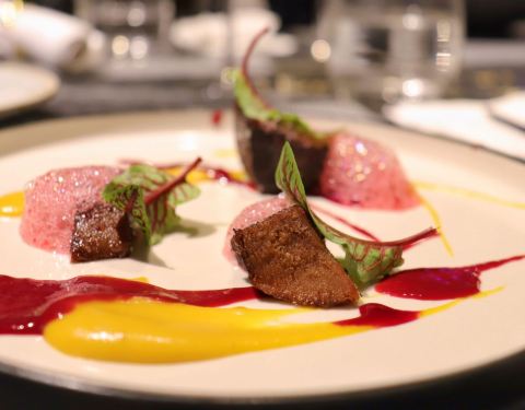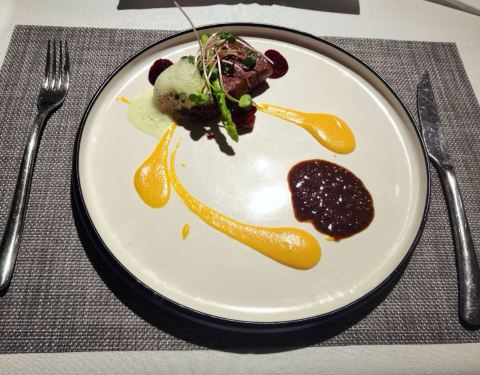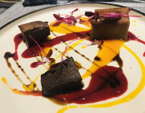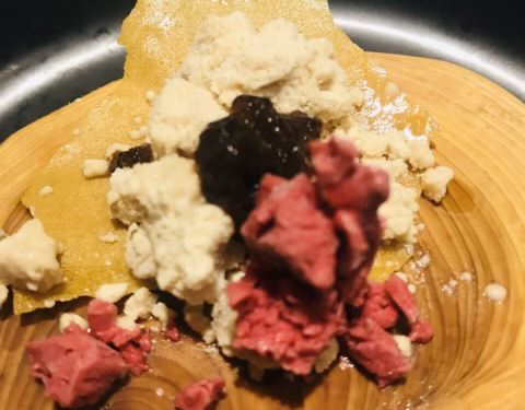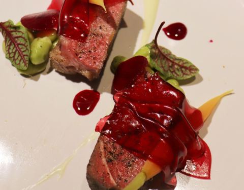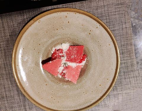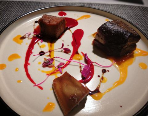 鹅肝做出了冰淇凌的口感,牛舌三段三种不一样的口感,澳洲牛排略带嚼劲,酸奶冰淇淋沾果酱的小甜蜜,...
