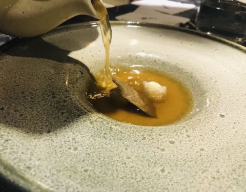 嘉庚公园后门附近的一家法式餐厅据说,主厨非常帅。为了一睹“芳容”,我来了。[嘿哈][嘿哈][嘿哈] 对于法餐,除了精致浪漫以外,我能想到的是幸福感。与你心爱之人,一起从前菜到餐后甜点,这是一个享受的过程。像初恋,热恋,到婚姻,每一道菜都很甜蜜。 餐前的低温烘焙72小时的蛋黄,嫩到心里头。鹅肝做出了冰淇凌的口感,牛舌三段三种不一样的口感,澳洲牛排略带嚼劲,酸奶冰淇淋沾果酱的小甜蜜,每一道菜都能满足我的味蕾。 虽远,却不虚此行。愿天下有情人终成眷属。
