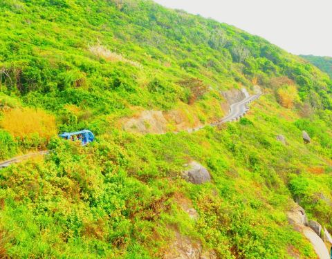 蜈支洲岛是一处海岛,有一部分的景区位于海岸线边,由于岩石陡峭,道路不利于行人,只能通过电瓶车前往