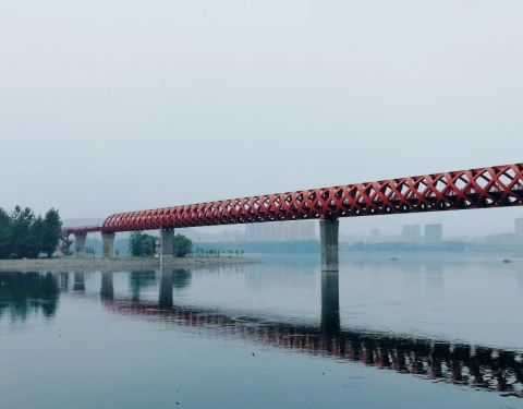免费的步行桥,连接汉江河两岸的城区和湿地公园,一到晚上灯光效果非常棒,是散步健身的好地方,每天晚上都有很多人。