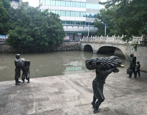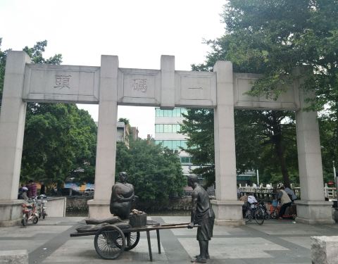 大良第一码头旧址位于 佛山市顺德区鉴海北路24号。 可坐公交到清晖园站下步行几分钟可到。 离华盖路步行街一端入口很近。 这里既是码头旧址景点,也分布了美食小吃。 码头旧址有条河,有座桥,还有形象生动的人物塑像。