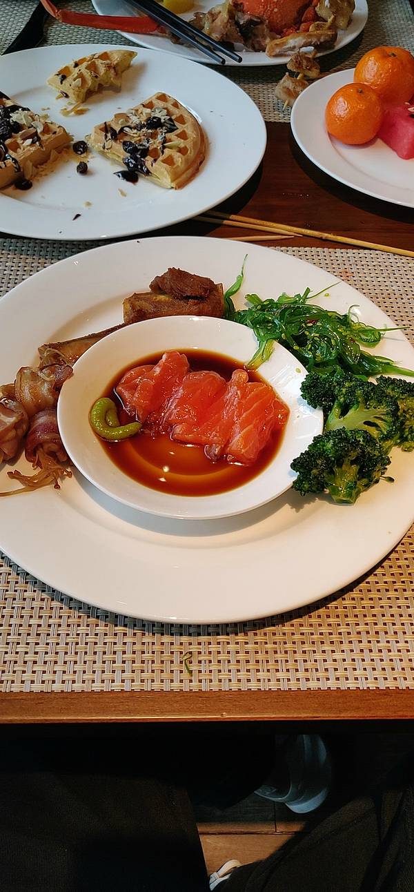 4.外卖!可以叫外卖进来,外卖的店铺都在5公里外,所以送过来会费点时间,晚上外卖小哥哥是可以坐着接驳车送到房间门口的,但是白天只能自己做接驳车去大堂拿。早餐: