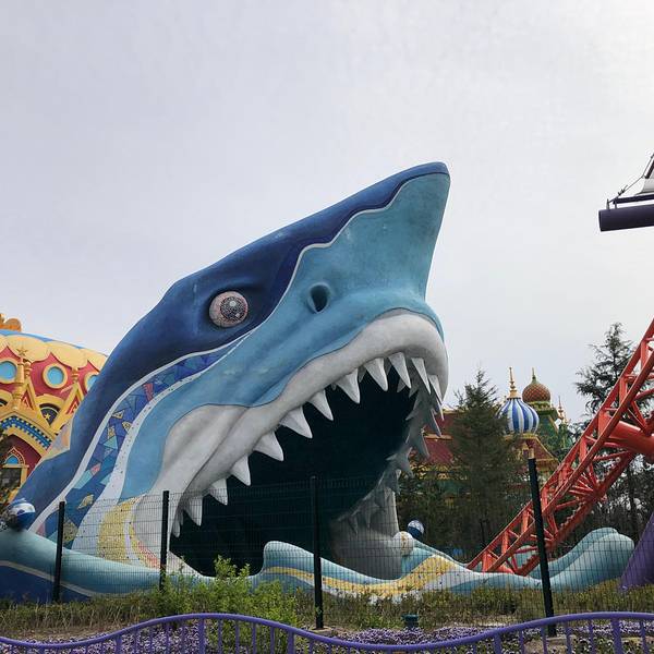一进园区大门就能看到海豚过山车,听着刺耳的尖叫声很刺激,车子会经过鲨鱼嘴巴