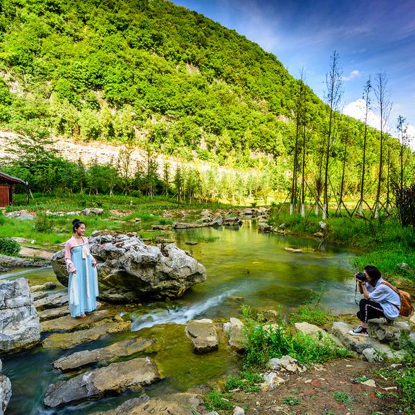 名字虽然叫画家村,这里的雕像却是一个摄影家在采风,是否取名 艺术家村 更为合适?这是画家村的景观,连绵的长廊在绿水青山之间美如画一般的世界。神泉谷景区后面的景点,有滑草场、攀岩、卡丁车。今年五一还新开了漂流 展开