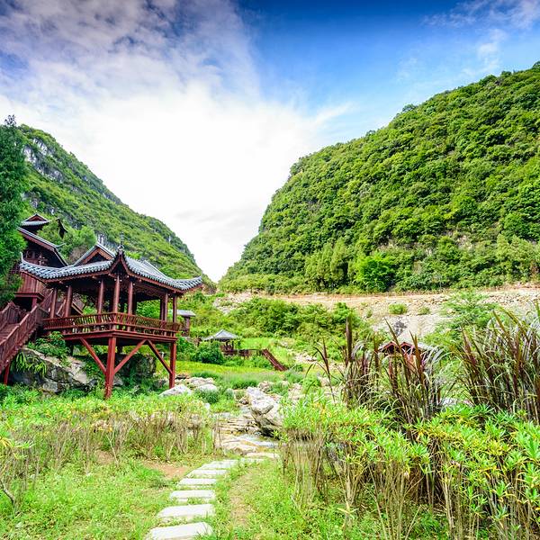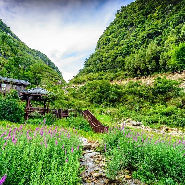 神泉谷休闲旅游度假区距离长顺县城仅11公里,一条乌麻河从上游贯穿威远古镇。景区主要是以典型喀斯特地貌自然风光为主,有玻璃滑道漂流、神泉驿站、自然漂流、西谷区等景点。景区山清水秀、空气清新,奇峰独秀,集山、水、园、林、花、草、清泉、幽谷、瀑布和挑战性项目于一体,有春日桃花开满山,夏有荷花出水鲜,秋赏粉黛乱子草,冬有雏菊耐岁寒的四季花谷美誉。粉黛草观赏区每年的8月下旬到11月中旬,是粉黛乱子草盛开的季节,花穗呈云雾状,远看如红色云雾,十分梦幻,简直是少女心爆棚的地方。神泉驿站神泉驿站主要由潮井湿地公园、葫芦湖、潮井神泉、瀑布等景观组成,有亭台水榭、品茗茶室、特色商铺、餐饮等配套设施,集吃喝玩乐于一体。玻璃滑道漂流玻璃滑道漂流位于西谷区粉黛乱子草观赏区与卷云驿站之间,滑道全长800米,落差约50米,傍山而下,有惊无险,颇具惊险刺激,适合喜爱冒险的游客体验。自然漂流自然漂流位于西谷区,自飞花驿站起漂,穿越整个粉黛草观赏区,水流平缓安全,适合各个不同年龄段的游客体验,全长约1.2公里。西谷区西谷区由湿地公园、水上乐园、婚庆主题公园、飞花驿站、粉黛草原等景观组成,是景区一大亮点,更是观花赏草的好去处。