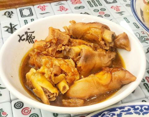 可能很多少人觉得明星开店卖的都是噱头而已,没想到山鸡哥如此走心,做吃食也是讲“义气”的。今天山鸡哥的迷妹来到他的地盘,感受这古惑仔环境下的地道港式风味。 「七爷清汤牛腩幼面」这碗清汤腩,被誉为最具香...可能很多少人觉得明星开店卖的都是噱头而已,没想到山鸡哥如此走心,做吃食也是讲“义气”的。今天山鸡哥的迷妹来到他的地盘,感受这古惑仔环境下的地道港式风味。 「七爷清汤牛腩幼面」这碗清汤腩,被誉为最具香港精神的“四大奇食”之一! 清澈汤底里一团爽口的幼面,佐以几块酥烂喷香的牛腩,撒一把翠绿香葱,一碗相当正宗的清汤牛腩面。 牛腩肉选料很关键!精选黄牛的坑腩+爽腩,炖煮到酥而不烂,肥瘦相间的肉质,肉香最为浓郁。 面条用的是竹升面,十分有韧劲,牛肉汤文火慢炖出来的。 这里吃面的碗用的是港片里的鸡公碗,超有江湖气息。 「牛丸鱼蛋双拼净食」TVB港剧里出镜率很高的牛丸和鱼蛋,配上鲜美的汤撒一点葱花。丸子的紧实度一级棒,一口咬下去还会在嘴里爆汁,弹牙到不行。 「秘制猪手净食」滑嫩Q弹的猪手,酱汁浓郁,满满胶原蛋白。嘴唇都快被黏住了呢!