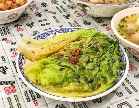 陈小春的七爷清汤腩,刚开业时也一度是网红店呐,现在热度慢慢降下来。但就餐时段也是满座。 店里布置得就像香港的茶餐厅一样,桌子下面是麻将牌,还蛮有趣的。墙上悬挂着舞狮头,还有古惑仔里的“义”字。 七爷清汤牛腩幼面 招牌清汤牛腩面,选了幼面。里面有4、5块牛腩肉,软嫩鲜香,牛味十足。 牛杂粗面 牛杂里面多是牛肠,还有少量牛肚和牛肺,牛杂特别入味,粗面没有细面好吃。 高汤萝卜 萝卜略清淡 但特别酥~喜欢。 糯米鸡 为了凑单点的,没想到有意外惊喜,料很足,特别糯米糯~ 牛肉丸鱼蛋双拼 牛肉丸比鱼蛋嗲,QQ弹弹,很有嚼劲。 港式冻奶茶 和 冻柠茶 都不错,冻柠茶要搅和一下再喝。冻饮杯子上的字也太好笑了吧:少壮不努力、屎都無得食。呃,说得好有道理的样子。