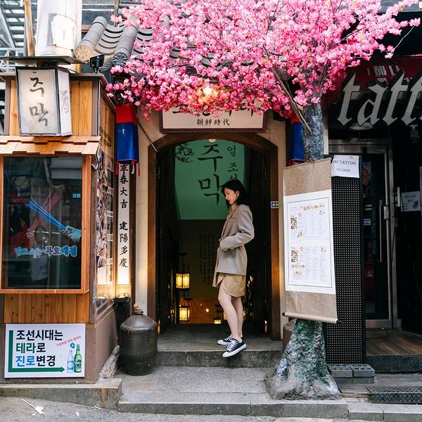 这家店算是弘大美食代表,《阿尔罕布拉宫的回忆》玄彬和朴信惠就在此取景,用餐环境百分之百还原了古 朝鲜 样貌,还能换上 朝鲜 服饰上演穿越戏码。比起味道,这家店的分量过分良心。传统米酒也值得体验。