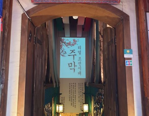 我我又来弘大打卡了 这次是因为家里的妹妹来韩国,让她感受一下韩国朝鲜时代,所以我上网找了这家代表餐厅,果然没让我们失望,不但有好吃的,还可以拍古代风的照片留念 还可以当作学韩国历史。。。 老板应该花了不少心思去研究,才能做出这么多场景,让我感受到身在朝鲜时代 这么特色的餐厅也吸引了很多明星来,也许能偶遇噢… 玄彬和朴信惠主演的韩剧【阿尔罕布拉宫的回忆】中拍摄地噢…劲爆 他家的菜式不但多,有火腿肠汤,辣炒章鱼,生章鱼,各种各样拌饭,我都想吃,我们点了鸡爪给的分量也很多,刚开始吃的时候感觉很辣,越吃越带劲,感觉没那么辣了,很好吃,奶酪球的拉丝很长,很香浓,布法罗辣鸡翅感觉不辣,带点甜,我们三个人吃不完,吃不完,吃不完!但是很好吃,休息了一下继续吃,不想浪费,反正里面这么好玩 还有各式各样的酒都有,传统的啤酒烧酒等,还有水果酒,很多韩国女生都爱喝! 平时约上三五知己来聚聚价格又不贵真的很好的地方