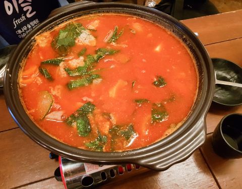 朝鲜时代是一家古代朝鲜时代氛围非常足的喝酒地方,就在宏大的闹事区内的地下一层,地下不仅店面超大,装修也是精致,完全复刻了朝鲜时代的场景,店如其名,走进店里仿佛穿越到了朝鲜时代具体位置在下面标注出来的。 店内最有猪肉泡菜锅,真的很好吃泡菜锅爱好者强烈推荐!大颗的泡菜配上大块的猪五花肉和豆腐,猪五花肉质一级棒,浸着泡菜汁不肥不腻。咕噜咕噜的红汤翻滚,加份拉面煮更是美味,泡菜汤的酸度和辣度刚刚好,正好搭配韩式米酒。这家店特调的水果味玛格丽可以说是颜值和美味兼具,甜甜的度数也不高,对于不喝烈酒的女生特别好