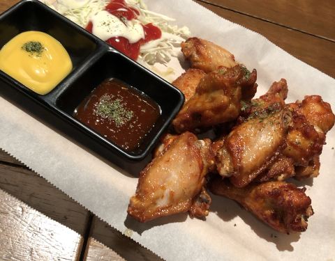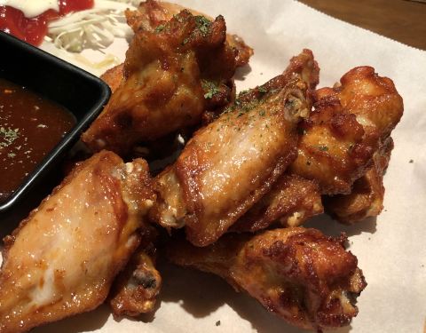 ...好吃,奶酪球的拉丝很长,很香浓,布法罗辣鸡翅感觉不辣,带点甜,我们三个人吃不完,吃不完,吃不完