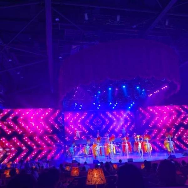 表演整体感觉还行吧,感觉不太适合小朋友去。吐槽一下酒店取票,就一个人在操作。我们去的时候很多人在排队,还有一个导游在那里叫,但是负责取票的人员就一个人。其实,酒店完全可以弄几台自助取票机,这样也能让人工取票压力小一点。
