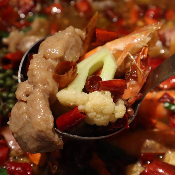 你说,鲜煮山海汇,麻辣的味道可以让嘴唇[嘴唇]变得性感,各种海鲜交汇,更适合下饭