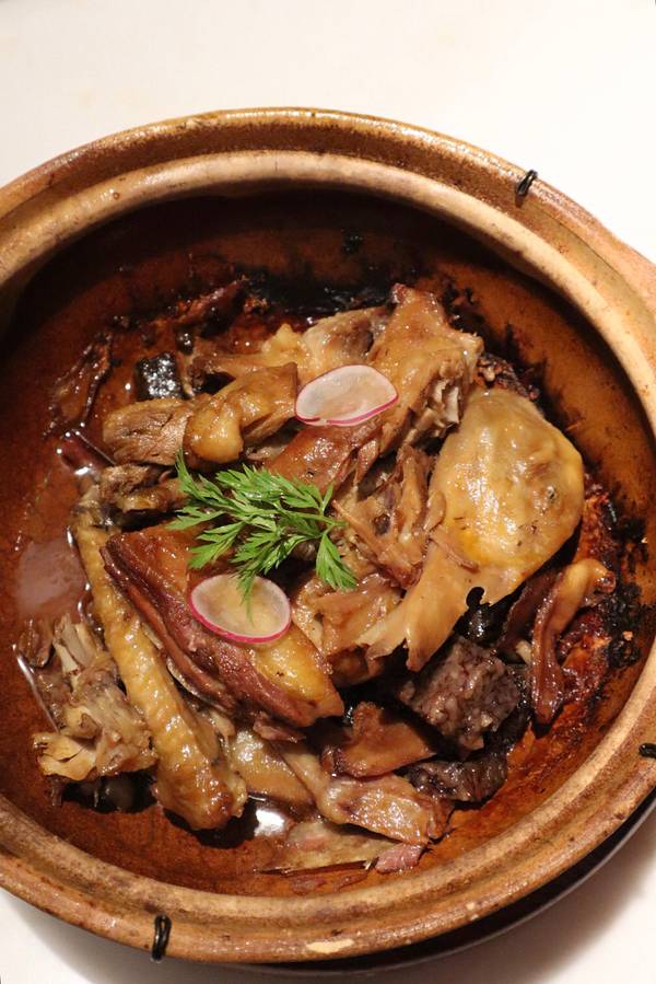 这次来的是宝龙新店。不念山海肴,一改粗放作风的闽菜风格,将八闽山海的厚润甘怡,和几经沉淀的浓郁人情都一并放入了碗里。为舌头勾勒出一幅,家乡的山河湖海,没有波澜壮阔,只为呈现出人山人海中念念不忘的福建山海味。有闽东闽西闽南闽北的地道风味,也有三明、连城、南平、泉州、漳州的特色小食。用餐环境既清新优雅又不失质朴,让人虽身处闹市却仿佛置身于海的广渺与山的深幽,又始终笼罩在一层淡淡的氤氲不去的“乡愁”之中。儿时葱糖卷薄薄的饼皮,卷上了肉松、萝卜酸、买羊汤、香菜、花生碎,最后淋上厦门本地的甜辣酱,滋味有咸有甜,咸甜一体,一口咬下去,酸甜苦辣融为一卷,清爽回味。