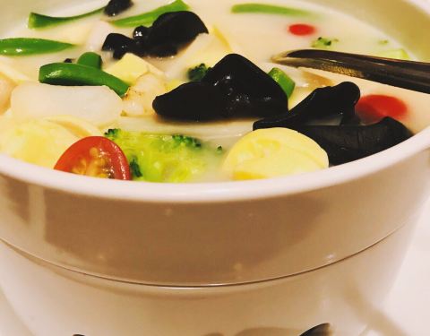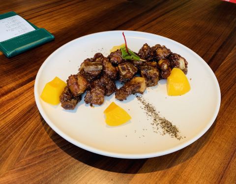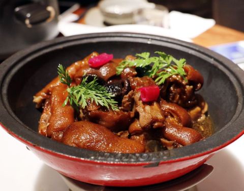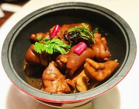 位置:宝龙一城L4 地处顶楼空中花园,挑高的建筑,四周落地窗,简约的绿植装饰增添了一丝生机。 冬菇脚焖河田:大肉我很爱,猪脚肉质Q弹、入味,啃起来很爽。 儿时葱糖卷:厦门朋友说这道菜有儿时的味道,“咸酸甜”。 藜麦香芒虾、海味焖闽北豆腐等菜品都值得推荐。