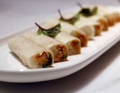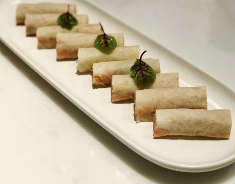 藜麦香芒虾、海味焖闽北豆腐等菜品都值得推荐。 儿时葱糖卷:厦门朋友说这道菜有儿时的味道,“咸酸甜”