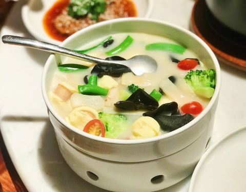 因为一个名,爱上一家店,说的就是不念~ 位于宝龙顶楼,全透明的玻璃窗,夜晚的灯光下,显得格外温馨,一点也没有玻璃幕墙的冷艳,菜品跟服务也是配的上,吃完心理很是舒坦~ |炝锅东山小海鲜^不靠颜值撑场,一上桌是不讨喜的,可是因为鲜,会让你从一开始吃到最后~老板说都是每天从东山新鲜运过来的,最简单的煮法,却最能保持食材原来的味道,怎一个鲜字了得~ |蔬菜沙拉^没想到沙拉也做的这么棒,味道调的恰到好处,清爽解腻,喜欢吃草的人不要错过~ |藜麦香芒虾^口感和味道很丰富的一道小菜,藜麦的颗粒爆炸感,鲜虾的脆嫩,外皮的酥脆,层次很是丰富,沙拉的咸香,香芒的清甜,紫苏叶的独特味道,味道很是和谐,一口一个,幸福感upupup~ |海味焖闽北豆腐^古法豆腐的焦香味,让人一口就爱上~ |竹笙秀球菌炖水鸭^清甜不腻的老鸭汤,三碗都不够~ 不念过往,尽享当下,不念在等你来吃饭~