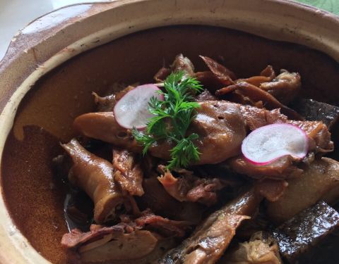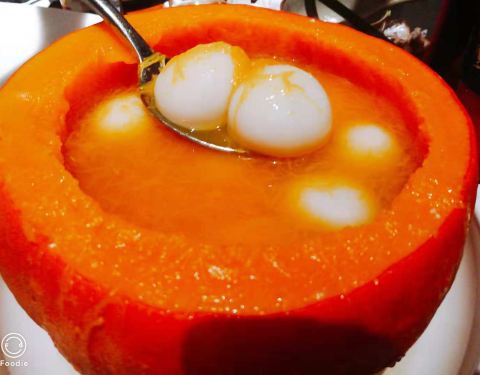 宝龙一城不念在4楼天台一处,位置明显优势,环境宽敞明亮,装修简洁明快!最有特色的是一角落半面石头墙,刚开始感觉是现代农家乐,后来与店里的整体效果结合感觉又有欧式风格,也算是特色之一吧。不念的菜品比较有创意,将许多闽南菜进行优化改良,最传统的厦门糖葱卷点击率很高,醋酸萝卜和甜甜的贡糖引发儿时的回忆。醋肉三拼有醋肉、炸豆腐和糍耙三样小吃,颜值以及口感都很好。芋头煲吃起来有点小惊喜,芋头非常棉柔,入口即化,不带点粗纤维,与香菇、虾仁干、蒜头一起煲得很香。个人非常喜欢黑椒排骨,排骨做的黑黝黝,法式摆盘,每块排骨刚好一口一个很好入口,易脱骨,嚼起来有黑胡椒的香味。汤品是竹荪绣球菌炖水鸭,单看菜名就知道汤的原料都是比较清爽养身的,果然好汤受欢迎,大家都喜欢喝这种鲜美营养的好滋味。饭后甜品是酒酿南瓜丸子,整个南瓜挖掉籽后加米酒和黑芝麻汤圆去炖,南瓜本身微甜,加上黑芝麻汤圆的甜很协和的甜汤,竟然不会觉得太甜或太腻,吃甜汤的时候还可以挖南瓜的墙角,把南瓜肉也吃了,分量足足的。