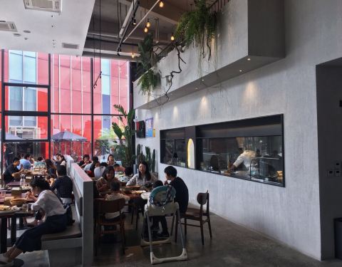 位置:宝龙一城L4 地处顶楼空中花园,挑高的建筑,四周落地窗,简约的绿植装饰增添了一丝生机。 冬菇脚焖河田:大肉我很爱,猪脚肉质Q弹、入味,啃起来很爽。 儿时葱糖卷:厦门朋友说这道菜有儿时的味道,“咸酸...
