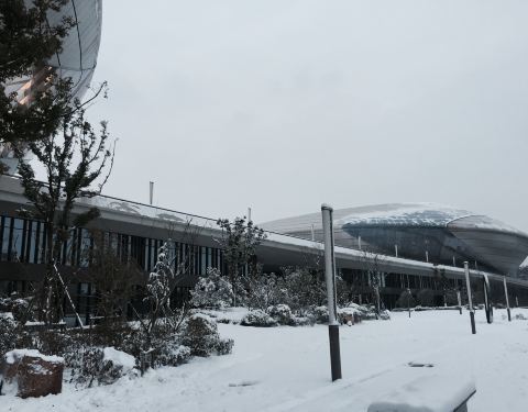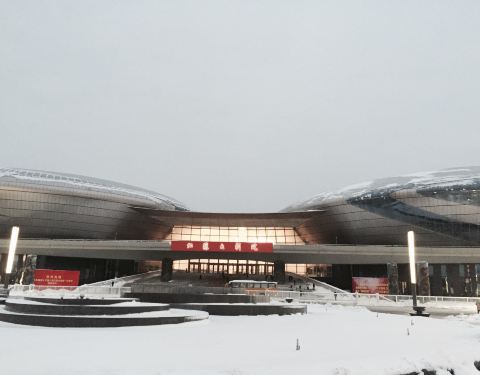 2018年初南京下了几场雪,其中有两场还蛮大的,地面也有了较厚的积雪,奥体中心和周边的金陵图书馆、江苏大剧院都披上了银装,煞是好看。