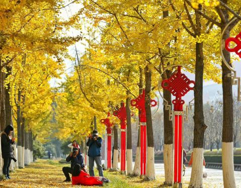 其实想点评的地点还没有,一直没搞清楚南京滨江公园到底包括哪些。除了沿江的部分外,在河西金陵图书馆和江苏大剧院旁也被称作滨江公园。奥体中心往西,金陵图书馆南侧的那条路非常漂亮,路两边栽上了银杏树,秋天的时候特别美,树上还挂着中国结,这里也成了南京网红的赏秋地。冬天的时候,雪后,这条路披上了银装,也十分漂亮。