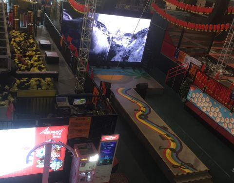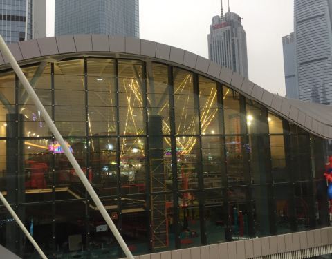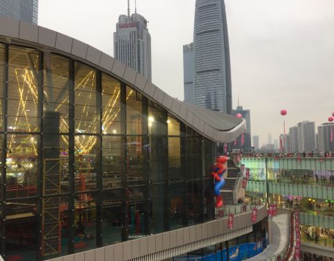 这一家运动馆在国贸城里面来说可谓是相当醒目了,占地面积非常的大有各种游乐设施,像是碰碰车呀,蹦蹦床呀,还有可以上班和雀跃的小舞台非常大,大概占了有两到三层,从情人桥上过来就可以很明显的看到感觉是非常好玩的,里面还配有咖啡店呀,餐饮等等。