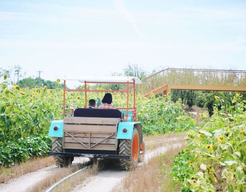 速度不快,却可以在美丽的向日葵花海中穿行,真是无比惬意!最推荐的就是拖拉机驾驶