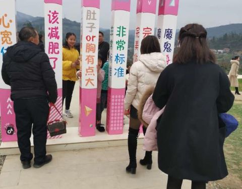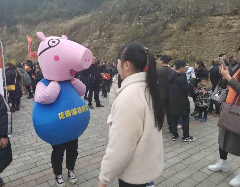 一起去玩的,很开心,春节很喜庆,文字挺有意思的,还有小猪佩奇~