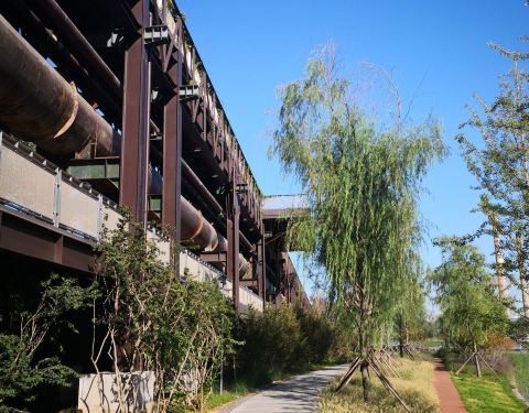 群明湖是首钢工业遗址公园内少有的一丝婉约味道,安静的人工湖泊冲淡了三高炉等钢铁巨兽的力量感和恐惧感,也为重工业注入了一丝人文气质,很适合游客散步和小憩。
