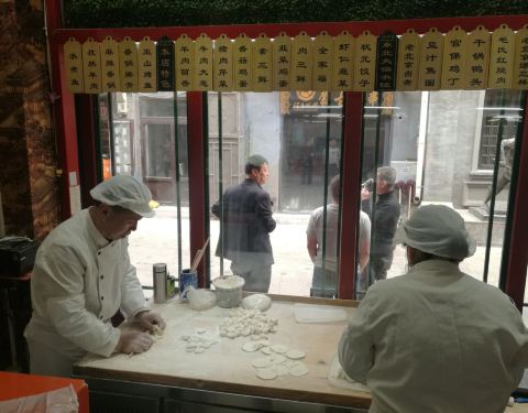 顾名思义“粮食店街”是粮食买卖的集中之地,只不过当初的粮店早已消失,取而代之的则是一座座比邻的饭馆,顺着粮食店街自北向南走去,穿过熙熙攘攘的人群,以及沿街琳琅满目的各色小旅馆和小吃店。