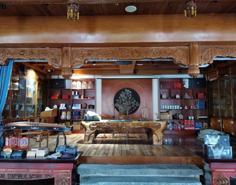 在贵阳机场附近的多彩贵州城,靠近最具特色的苗寨建筑的一楼,位置还是挺好找到,茶馆古香古色,看来也是花重金打造的一家茶馆,奈何多彩城冷冷清清,所以看着来喝茶的人也不多,感觉可惜了,挺好的一家茶馆,不...