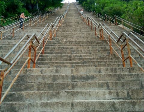 平顶山市因山得名---平顶山, 山顶公园,位于市区北平顶山顶,平顶山市的名字有此而来。山顶公园海拔高度426.5米,山顶平坦,顶平如砥,面积850亩。兴建的山顶公园已初具规模,山顶公园建在海拔427米高的平顶山山顶上,面积约0.6平方公里,公园内道路纵横,奇木成行,花坛锦簇,草坪如毯,山前有成片的松林、柏林、槐林,茂密旺盛,生机盎然,登山石阶666级,直冲山顶,雄伟壮观。植树种草,辅以雕塑喷泉、园林建筑。山顶公园成为本市居民休闲度假及外地客人观光游览的最佳去处