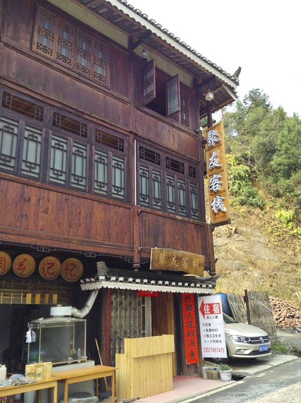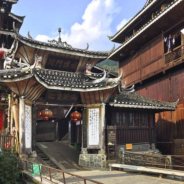 #点评召集令#皇都侗寨 湖南通道的皇都侗寨近年来一点点名声大起来,而且交通方便还是值得前来游览的。 历史上,通道县为楚越分界的走廊地带,素有“南楚极地”、“百越襟喉”之称。通道皇都侗寨位于平坦乡。由头寨、尾寨、盘寨、新寨四村组成,历史悠久,是侗民族民风民俗最为完整亮丽的地区。前三个寨子连为一体,新寨则是处于河对岸,由普修桥和公路相通,与另三个寨子隔河相望。皇都侗寨的古老建筑保留比较完整,现有侗族吊角楼群,4座鼓楼,和1座风雨桥-普修桥。 普修桥始建于清乾隆年间,后毁于洪水,清嘉庆八年重修,1984年复修,2007年寨民对桥体又进行维修。所有古迹必需这样不断维修才能保存至今,只是修缮的水平有所差异,不要修成崭新模样。 桥全长57米多,宽4.2米,桥身为重檐长廊,两侧是直棂窗,有三座桥亭,桥两端各设一座桥门,为重檐歇山顶,屋脊和檐角泥塑龙凤等,桥门都朝向一侧,而不是正中,这点也很有特色。桥门两边桥亭为三重檐,中间桥亭有七重密檐,下三层为方形平面,上四层为八角攒尖葫芦顶,顶尖泥塑青鸟一只,也是能迎风鸣响的。桥亭檐角起翘高挑,雕塑精致,曲线优美。桥廊脊泥塑两组双龙戏宝,宝珠用小块玻璃境片组合镶嵌而成,装上风叶,风起叶动,声光交映,美不可言。 檐板上彩绘各式各样花草,五彩缤纷,艳丽多姿。三座桥亭内设神龛,中亭关圣殿,两端亭分设始祖祠和文昌宫。哇!非常复杂的一座廊桥,在阳光下美艳无比。让我爱不释手地围着看着、赏着、拍着,不想离开。外面看够了,又回到桥厢内坐着,东摸西看。 这时来了一队身着民族服装的侗族队伍,听说好像是程阳八寨来这里学习取经来的,阳光下从桥门走下来,一下子给古桥增加了灵动气息。 新寨的寨门比较漂亮,里面的房屋也比较新些 。实用攻略: 门票:50元 开放时间:全天 交通:交通方便,每天7:30从通道县城到皇都的头班车,以后均每小时一班,到晚6:00。半小时车程, 住宿: 侗寨内有多家宾馆民宿,我入住桥头的聚友客栈条件不太好,往寨子里面走有一家较大的宾馆,感觉不错。 美食:聚友客栈楼下小饭馆