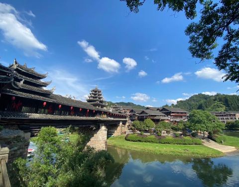 皇都侗寨是一个非常宁静的小乡村,完全没有开发的痕迹,民风淳朴,到的时候甚至还有村里的孩子光着身子在河里玩。最漂亮的建筑就是普修桥了,有幸的话可以碰到带团的导游来听听。