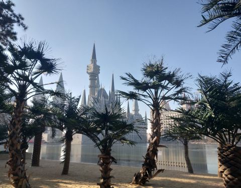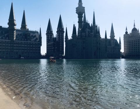 欧式建筑,仿照哈利波特里的那个学院建的,吸引很多人来欣赏,确实挺好看的,很多拍婚纱照的