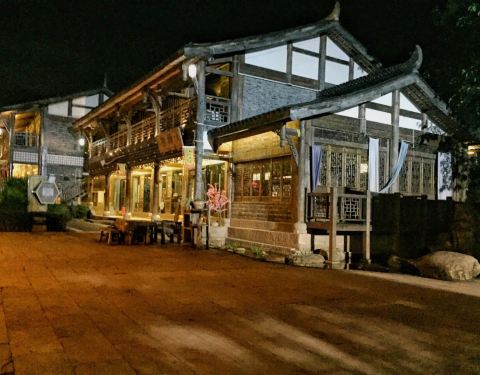 小镇一隅小镇温泉景色不错烤全羊酒店外的烧烤场地羊杂汤夜景还不错这夜景漂亮喜欢的摄影角度
