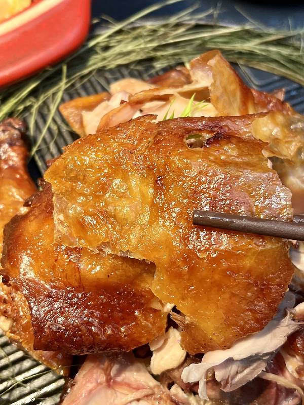 非遗特色做法超惊艳,鸡皮金黄焦香酥脆,油脂烤得清爽不腻,鸡肉鲜嫩多汁,满满香茅草草木清香,肉质不柴不腥,蘸秘制蘸水风味更浓,桌桌必点硬菜!